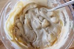 The topping is a essentially just a very buttery, nutty crumble. Cube 50g cold butter and place in a small bowl with 30g plain flour and 50g light brown sugar. Rub the mixture together with your finger tips to form a rough, chunky crumble. It doesn’t need to be uniform. Chop a generous handful of pecan nuts into medium-sized pieces and stir through. Now, if you can get them, stir through 3tbsp of maple sugar crystals. Some of the brown sugar crystals that you can buy for coffee would also work very nicely. Otherwise, just add extra brown sugar. Set aside whilst you make the cake batter.